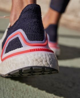 Obuwie Ultraboost 19 to kolejna odsłona wciąż ulepszanych rozwiązań dla biegaczy. Zawiera m.in. system Torsion Spring rozwijany od prawie 30 lat. Pod tą nazwą kryje się lekka konstrukcja buta, która współpracuje z podeszwą BOOST dla uzyskania szybszej reakcji obuwia przy kontakcie stopy z podłożem. Z kolei bezszwowa cholewka 3D Primeknit 360, a także zapiętek Heel Frame sprawiają, że buty Ultraboost 19 dopasowują swoją pracę do naturalnych ruchów stóp.